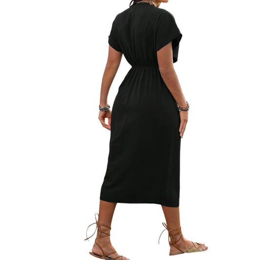 ElfogyottSHE fekete átlapolós midi ruha