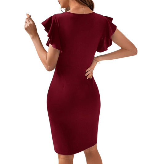 ElfogyottSHE bordó fodros ujjú midi ruha