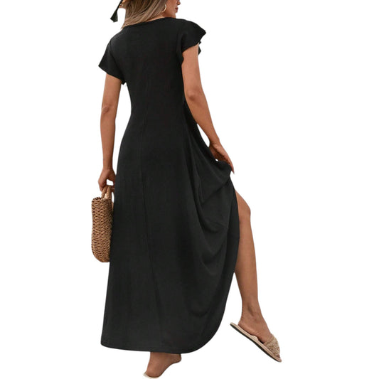 ElfogyottSHE fekete V-nyakú maxi ruha