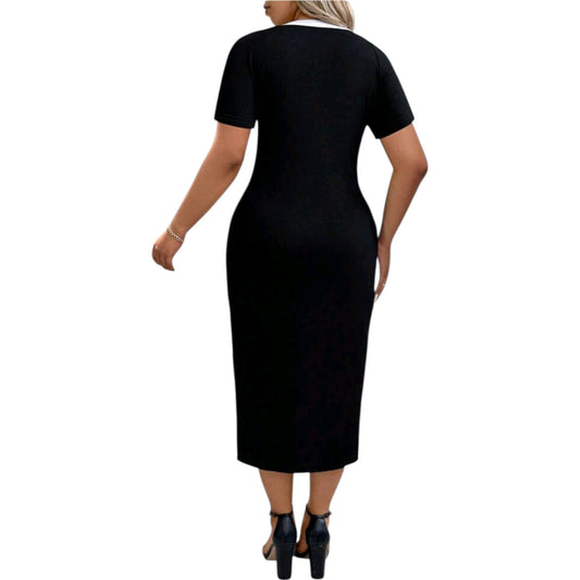 SHE fekete és fehér színblokkos midi ruha