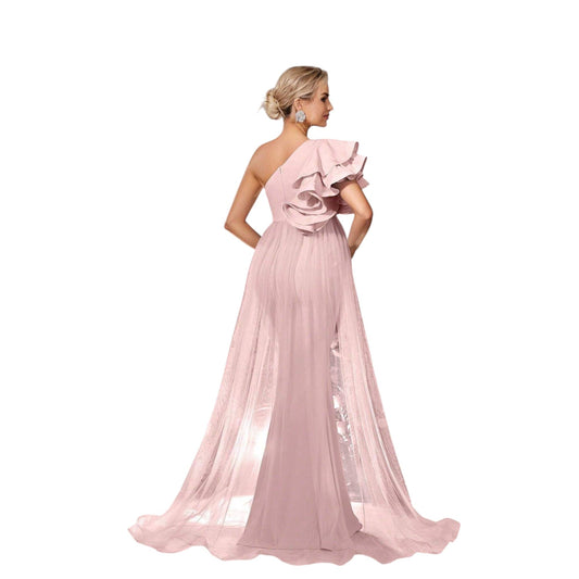 SHE rózsaszín fodros kismama estélyi ruha