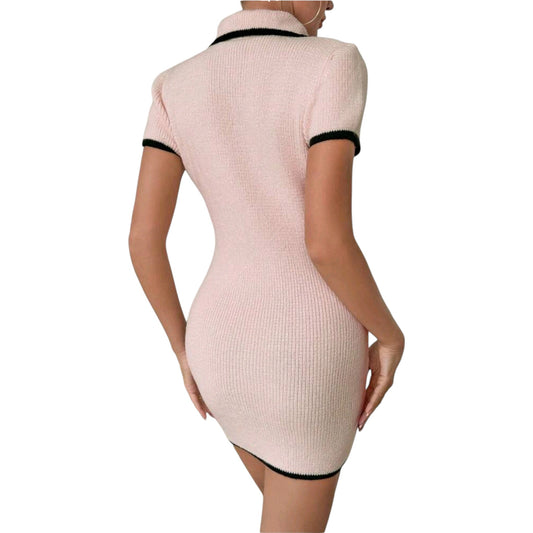 ElfogyottSHE bézs galléros, kötött mini ruha