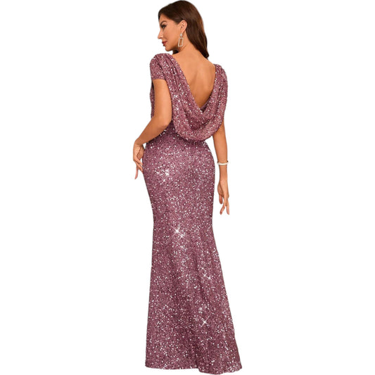 ElfogyottSHE lila rövid ujjú flitteres maxi ruha