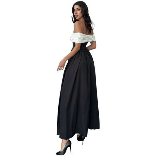ElfogyottSHE fekete fehér elegáns maxi ruha