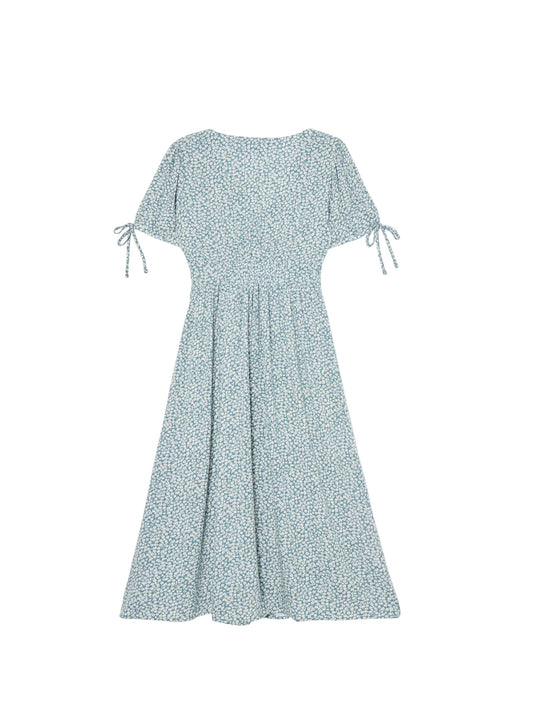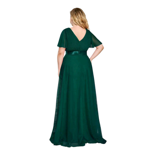 SHE sötétzöld, V-nyakú, tüll maxi ruha övvel