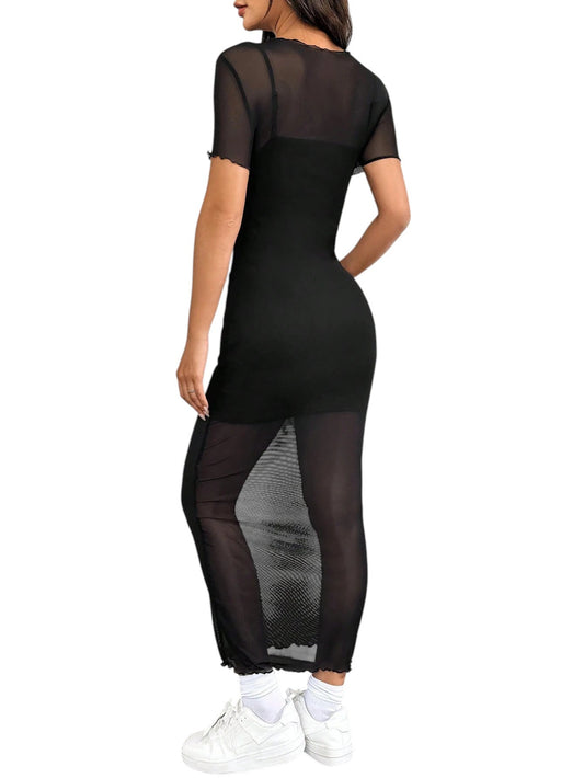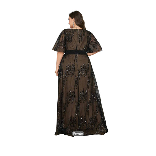 SHE fekete flitteres, sliccelt maxi ruha övvel