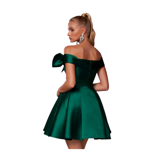 SHE smaragdzöld, váll nélküli mini ruha masnival