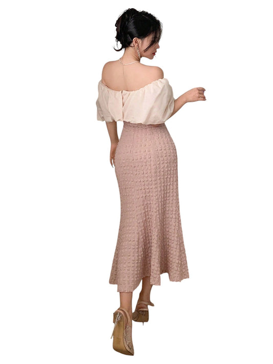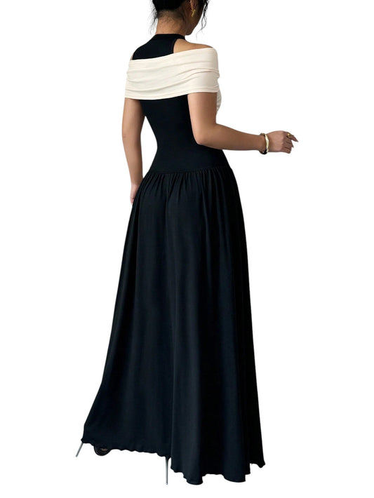 ElfogyottSHE fekete-törtfehér alkalmi maxi ruha
