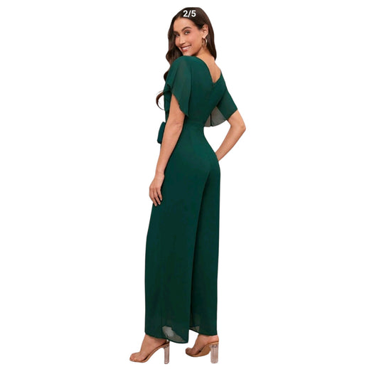 ElfogyottSHE sötétzöld, átlapolt jumpsuit övvel