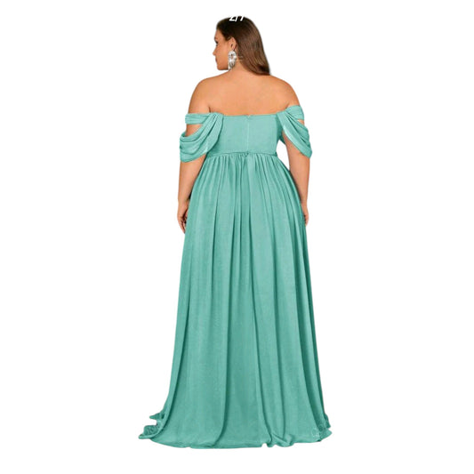 ElfogyottSHE türkizkék, váll nélküli maxi ruha