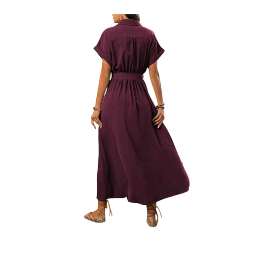ElfogyottSHE bordó, gombos midi ingruha övvel
