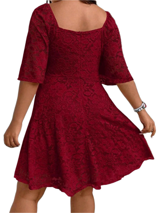 SHE bordó csipkés rövid ujjú elegáns ruha