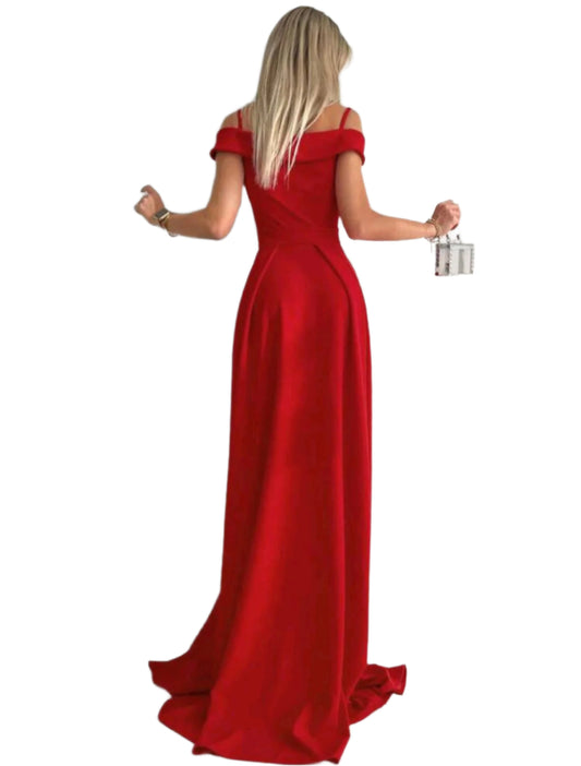 SHE piros elegáns hosszú ruha oldalt felsliccelt szoknyával