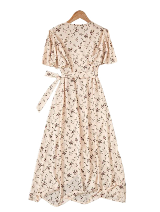 ElfogyottSHE bézs virágmintás átlapolt maxi ruha