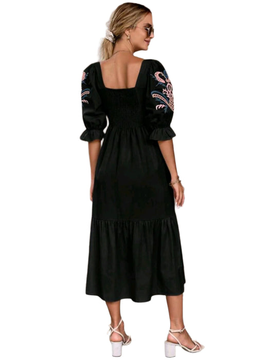 ElfogyottSHE fekete hímzett bő fazonú ruha