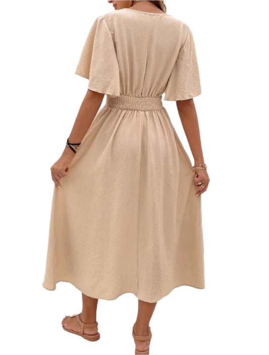 ElfogyottSHE bézs hímzett derekú nyári ruha
