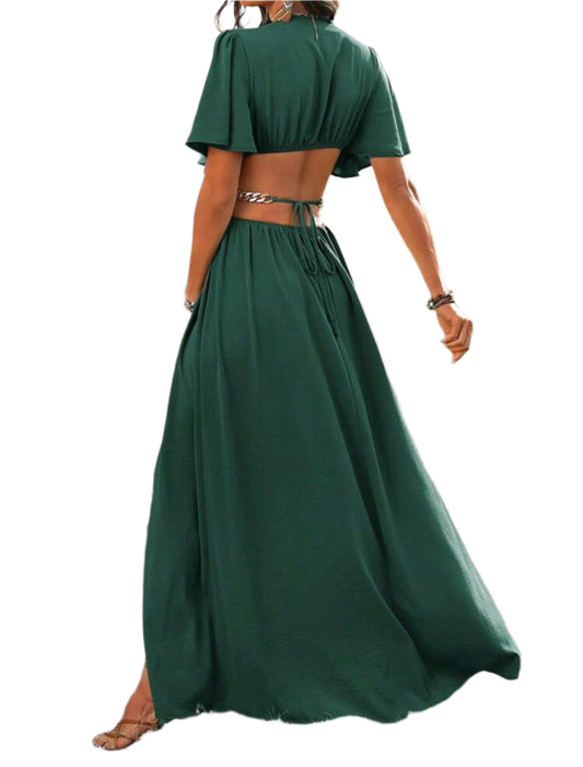 ElfogyottSHE zöld kivágott láncdíszes maxi ruha