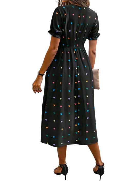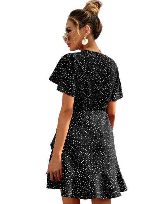 SHE fekete fehér pöttyös átlapolt nyári ruha