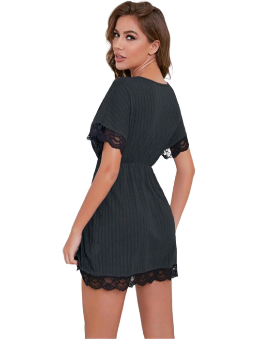 ElfogyottSHE fekete átlapolt miniruha megkötővel