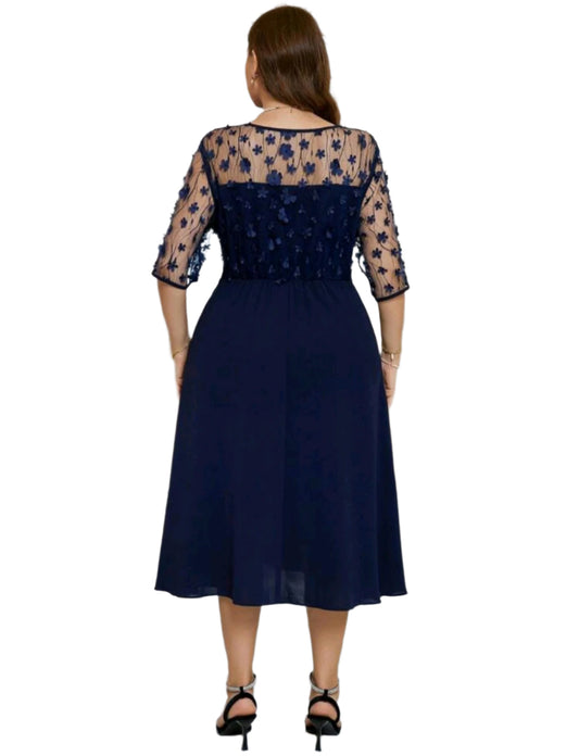 SHE sötétkék csipkés felsőrészű alkalmi ruha
