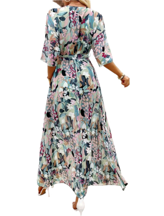 ElfogyottSHE színes virágmintás megkötős maxiruha