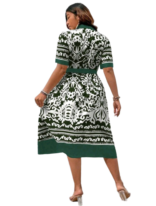 ElfogyottSHE zöld-fehér mintás megkötős ingruha