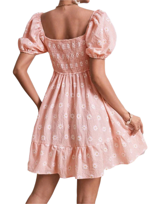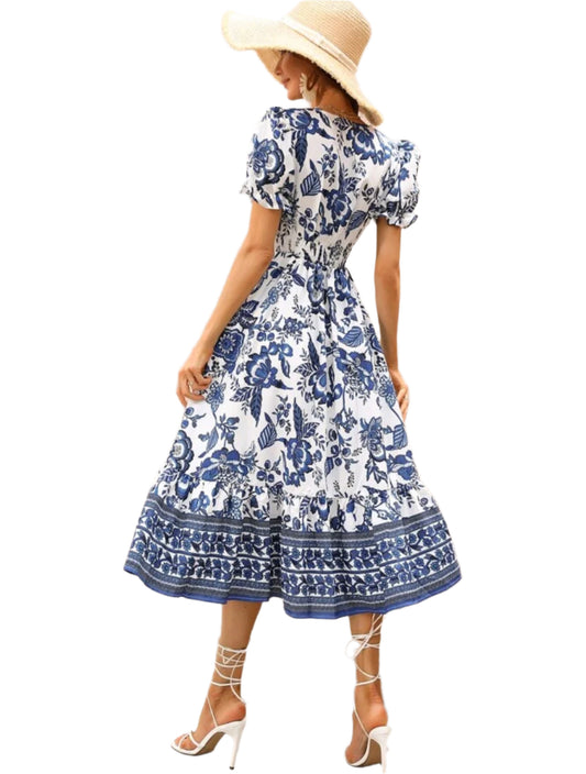 SHE fehér kék virágmintás puffos ujjú maxiruha