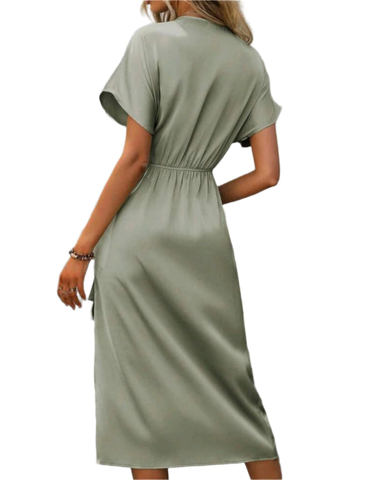 SHE púderrózsaszín szatén hatású hosszú ruha