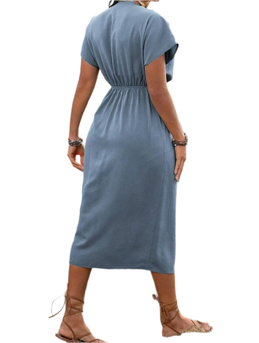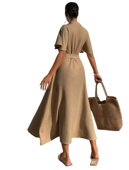 ElfogyottSHE bézs gombos, megkötős nyári ruha