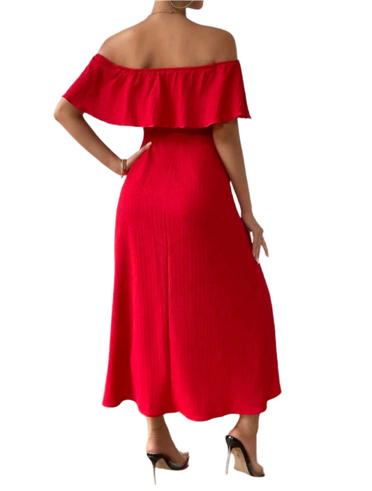 ElfogyottSHE piros váll nélküli nyári midiruha