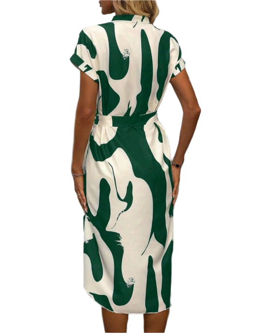 ElfogyottSHE zöld-fehér mintás öves ingruha