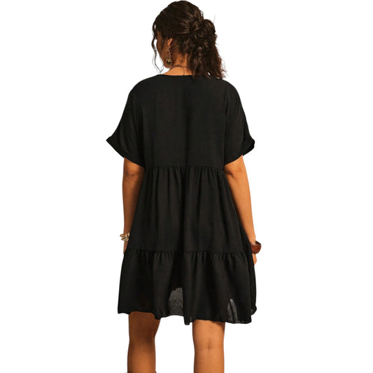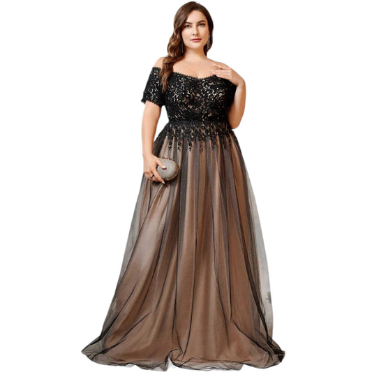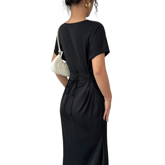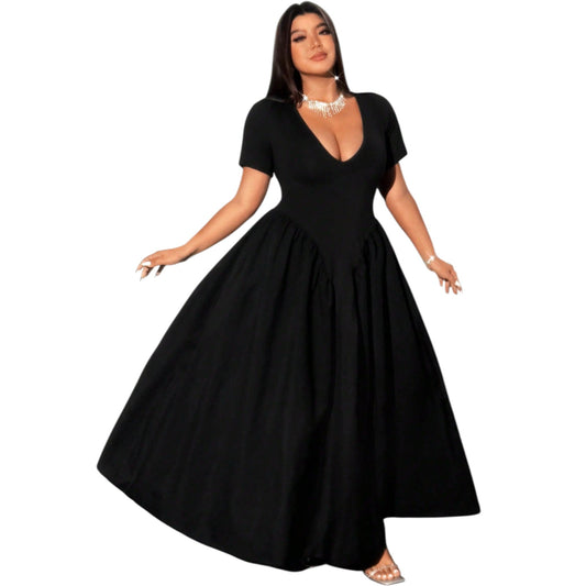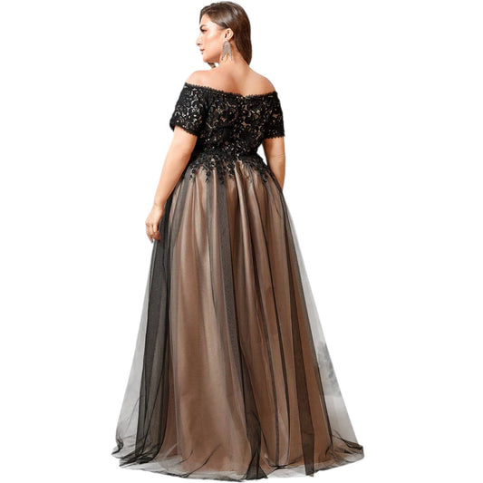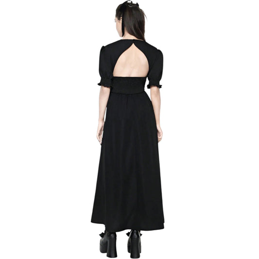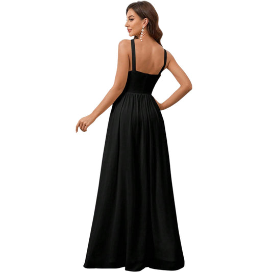 ElfogyottSHE fekete hímzett hasított maxi ruha