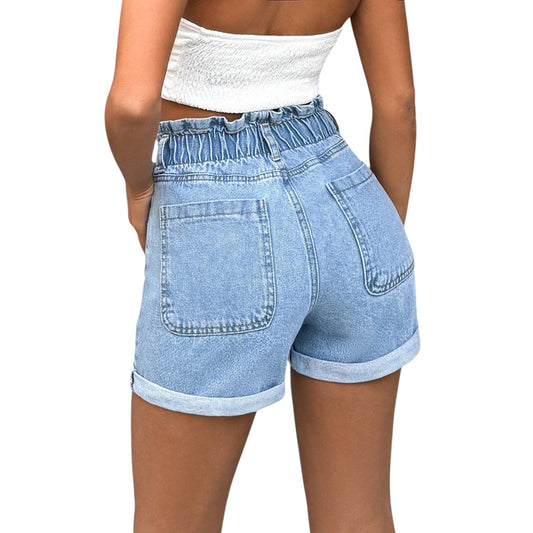 SHE világoskék ráncolt derekú farmer rövidnadrág
