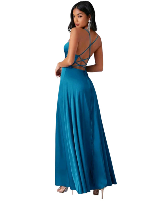 SHE halvány rózsaszín V-nyakú aszimmetrikus maxi ruha