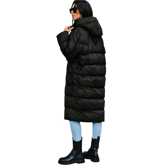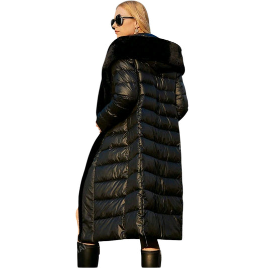 SHE fekete hosszú bélelt kabát műszőrme szegéllyel