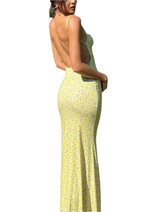 ElfogyottSHE világossárga virágmintás szűk ruha