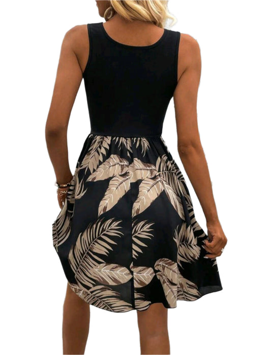 ElfogyottSHE fekete leveles mintás nyári ruha