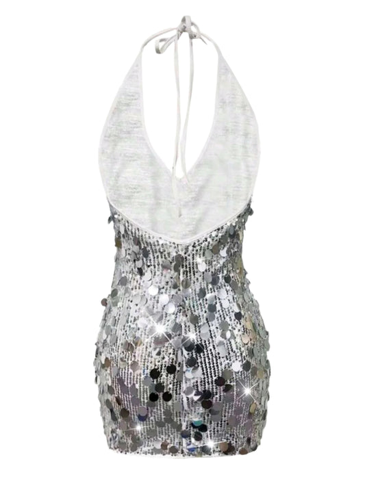 SHE ezüst flitteres mélyen dekoltált mini ruha