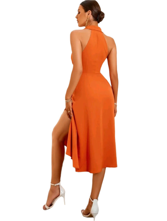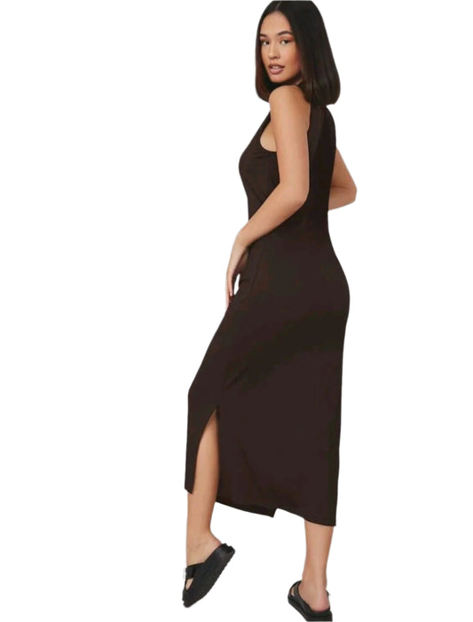 SHE barna ujjatlan egyenes szabású maxi ruha