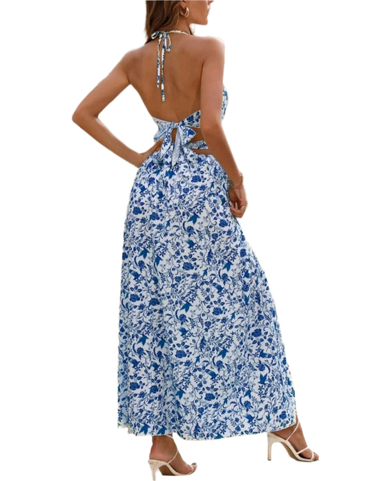 ElfogyottSHE kék virágmintás kivágott maxi ruha
