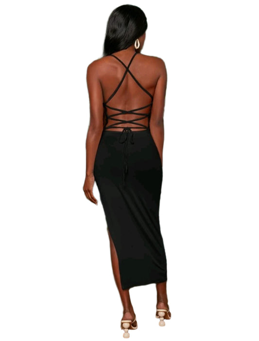 ElfogyottSHE fekete pántos szűk fazonú maxi ruha