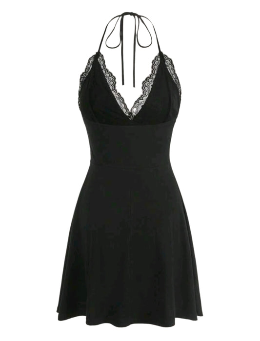 ElfogyottSHE fekete csipkés fűzős miniruha