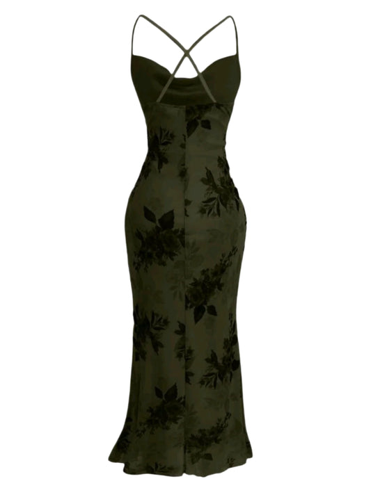 ElfogyottSHE zöld mintás pánt nélküli maxi ruha