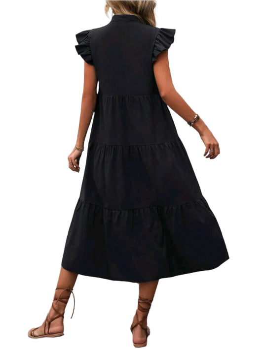 ElfogyottSHE fekete fodros ujjú maxi ruha