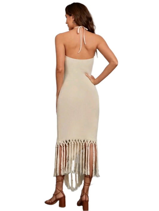 ElfogyottSHE krémszínű boho rojtos midi ruha