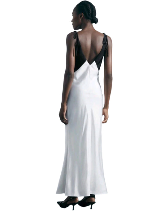 ElfogyottSHE fekete-fehér ujjatlan midi ruha