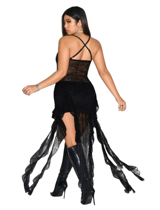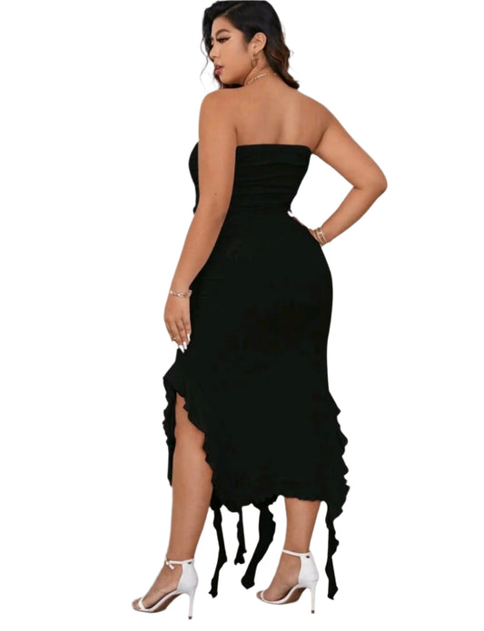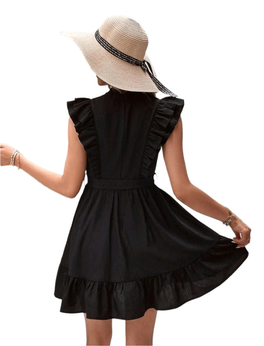 ElfogyottSHE fekete fodros ujjatlan miniruha