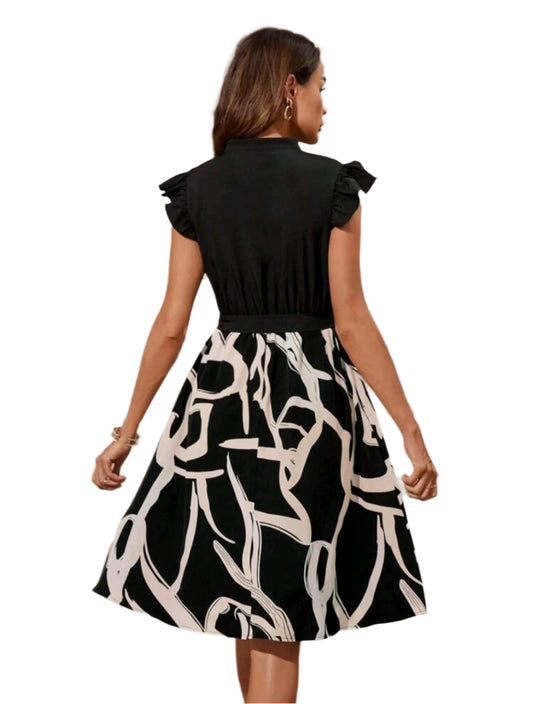 ElfogyottSHE fekete-fehér mintás midi ruha