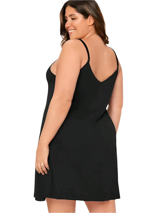 SHE egyszerű fekete spagettipántos ruha