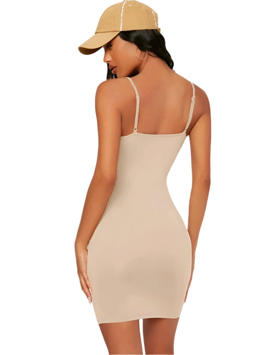 SHE testhezálló bézs spagettipántos miniruha